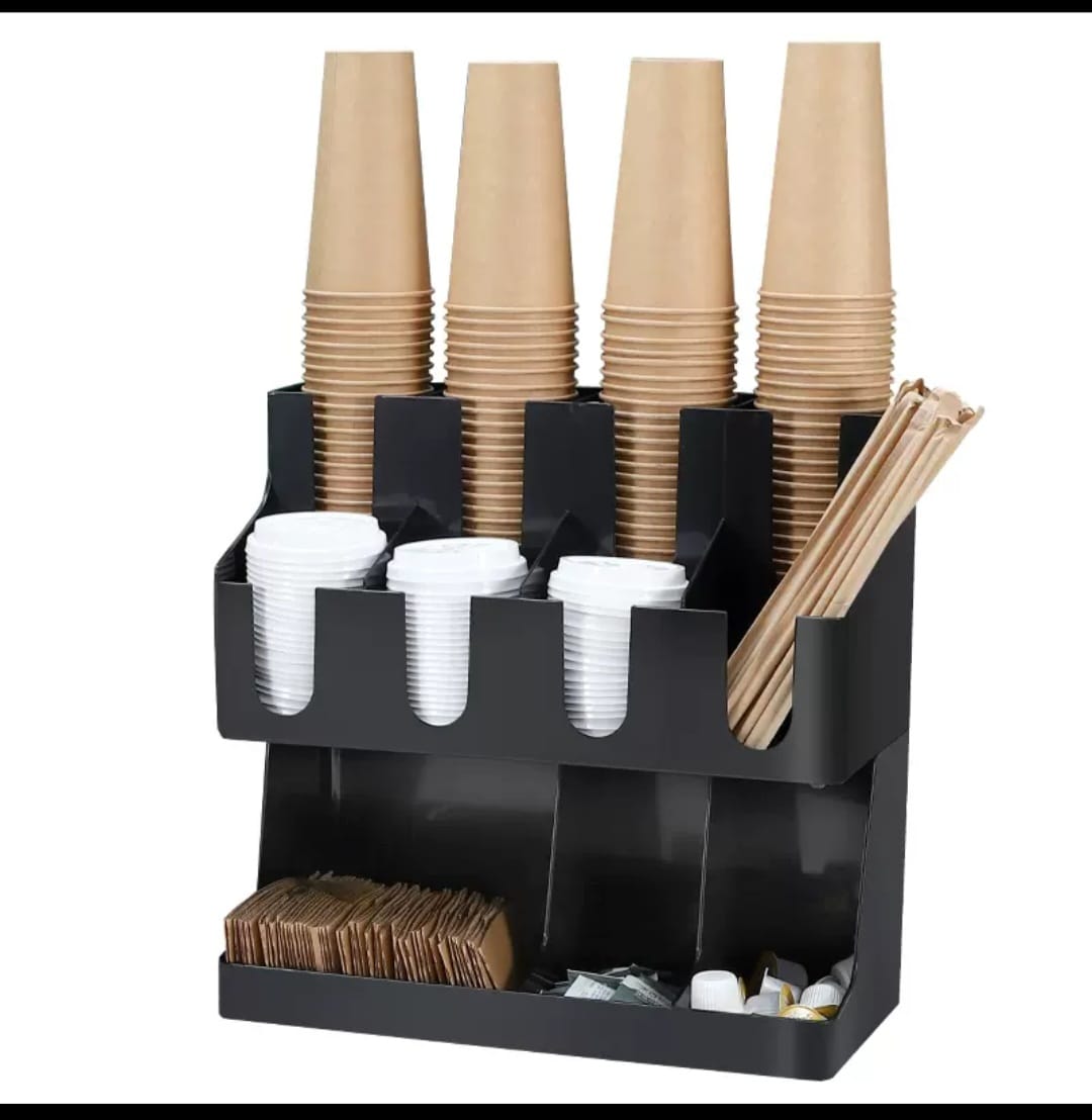 حافظ على ركن قهوتك أنيقًا ومنظمًا مع هذا المنظم العملي ذي الطبقتين. مصمم بستة أقسام لحفظ أكواب القهوة وأغطيتها وملاعق السكر والتوابل في مكان واحد. مصنوع من بلاستيك أسود متين بتصميم عصري، مثالي للمقاهي والمكاتب وأركان القهوة المنزلية. يساعد على توفير المساحة ويضمن سهولة الوصول إلى المحتويات خلال أوقات الذروة.