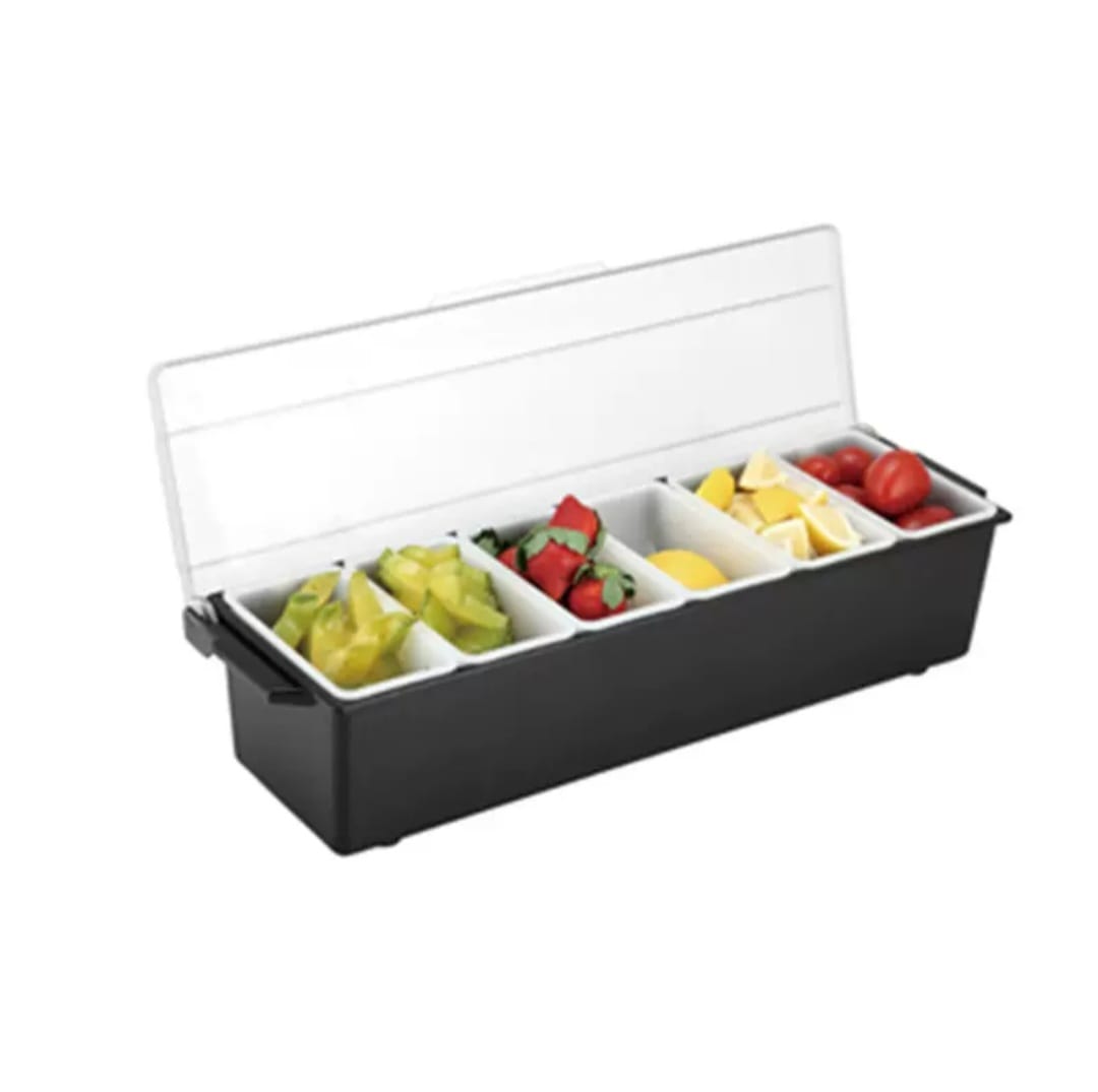 نظّمي زينة منزلكِ وقدميها مع هذه المنصة الأكريليكية الشفافة بستة أقسام. مثالية للفواكه والإضافات ومستلزمات البار، فهي تحافظ على كل شيء طازجًا وواضحًا وسهل الوصول إليه. متينة وأنيقة، ومثالية للمقاهي والحانات والمطاعم أو للمناسبات المنزلية.