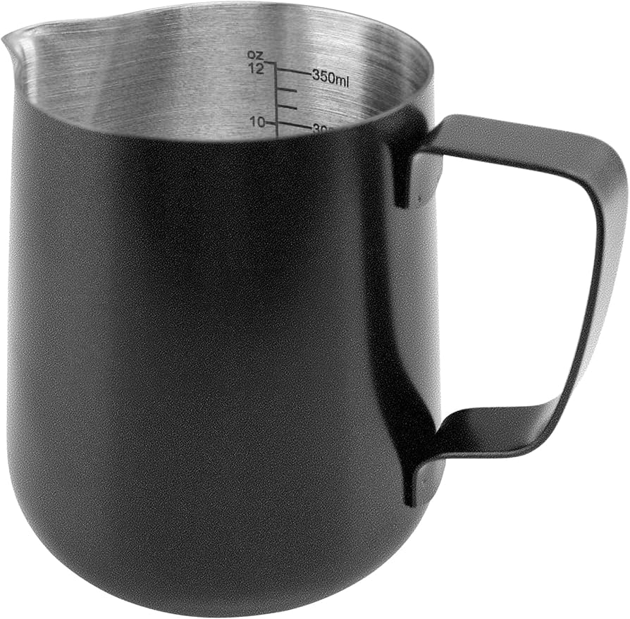 إبريق متين من الفولاذ المقاوم للصدأ، مصمم لرغوة حليب مثالية وسكب سلس ودقيق. مثالي لفن اللاتيه، وفناني تحضير القهوة في المنزل، والمقاهي الاحترافية.