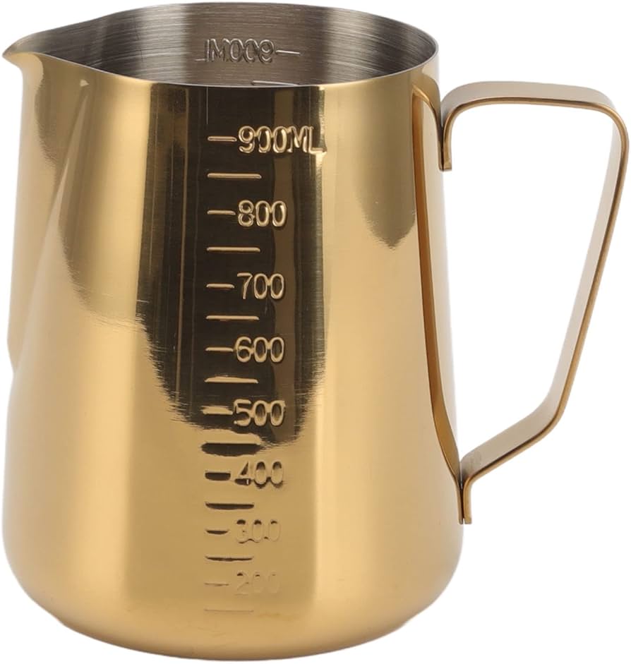 إبريق رغوة الحليب من الفولاذ المقاوم للصدأ (ذهبي) (900 مل)
